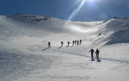 It’s great to get used to some of the skills of ski-touring bit by bit and not launch into a hut-to-hut tour straight away. A series of day-tours with the option of going for a overnight hut stay as part of a 2-day tour is the perfect way to get started.