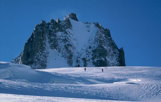 Touring above the Vallée Blanche, with the Tour Ronde behind, Mont Blanc Massif