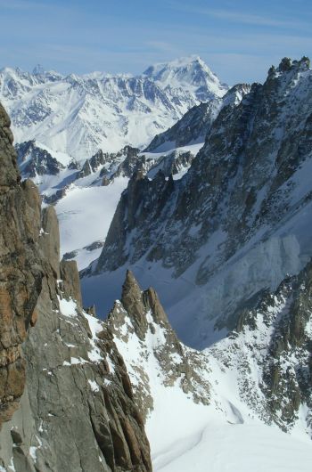 The Col du Chardonnet, looking east to the Grand Combin and the Matterhorn